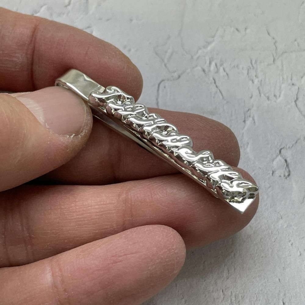 359.【TAKASHI】シルバー製オーダーメイド・ネームネクタイピン【わに口】オールドイングリッシュ書体 ロジウムメッキ