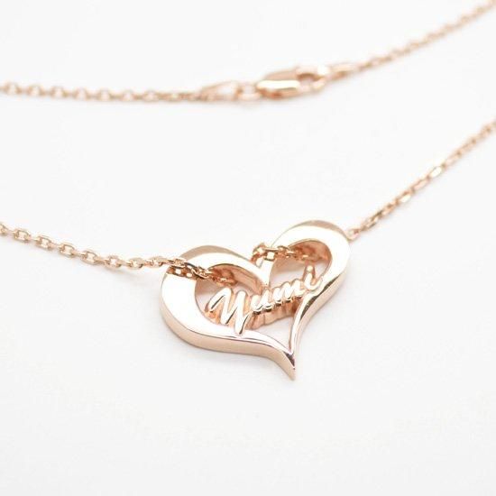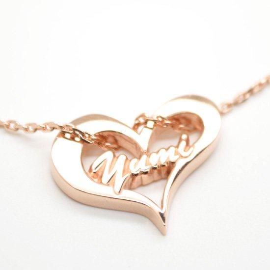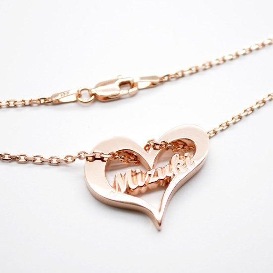 ■シルバー製オープンハートネームネックレス-ピンクゴールドメッキ-[3書体] ※チェーン付